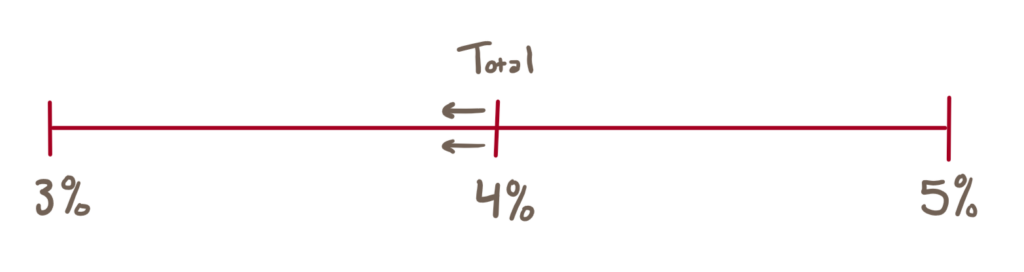 Importantly, even if (A) and (B) weren’t completely outside the range we need, we should still land on the right option based on the ratios involved. That is, 3% is a little more than half of 5%; therefore, a little more than half of the money must be in the 3% account; therefore, we need something a little less than 4%—i.e., a little closer to 3% than it is to 5%—and pick option (C).